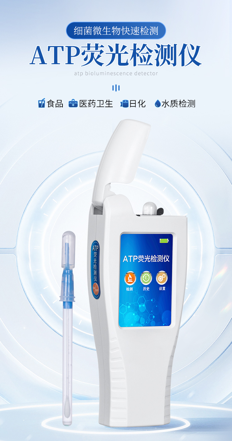 該設(shè)備為全新升級產(chǎn)品,大屏幕觸摸顯示屏,代替?zhèn)鹘y(tǒng)按鍵。操作采用生物化學(xué)反應(yīng)方法檢測ATP含量,ATP熒光檢測儀基于螢火蟲發(fā)光原理,利用“熒光素酶—熒光素體系”快速檢測三磷酸腺苷(ATP)。ATP拭子含有可以裂解細(xì)胞膜的試劑,能將細(xì)胞內(nèi)ATP釋放出來,與試劑中含有的特異性酶發(fā)生反應(yīng),產(chǎn)生光,再用熒光照度計(jì)檢測發(fā)光值,微生物的數(shù)量與發(fā)光值成正比,由于所有生物活細(xì)胞中含有恒量的ATP,所以ATP含量可以清晰地表明樣品中微生物與其他生物殘余的多少,用于判斷衛(wèi)生狀況。