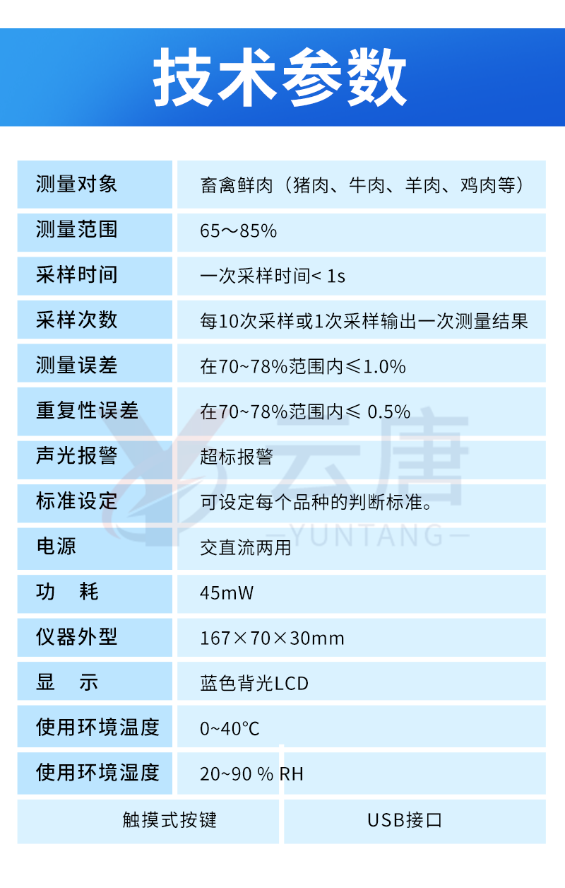 YT-RLS肉類水分檢測(cè)儀技術(shù)參數(shù):